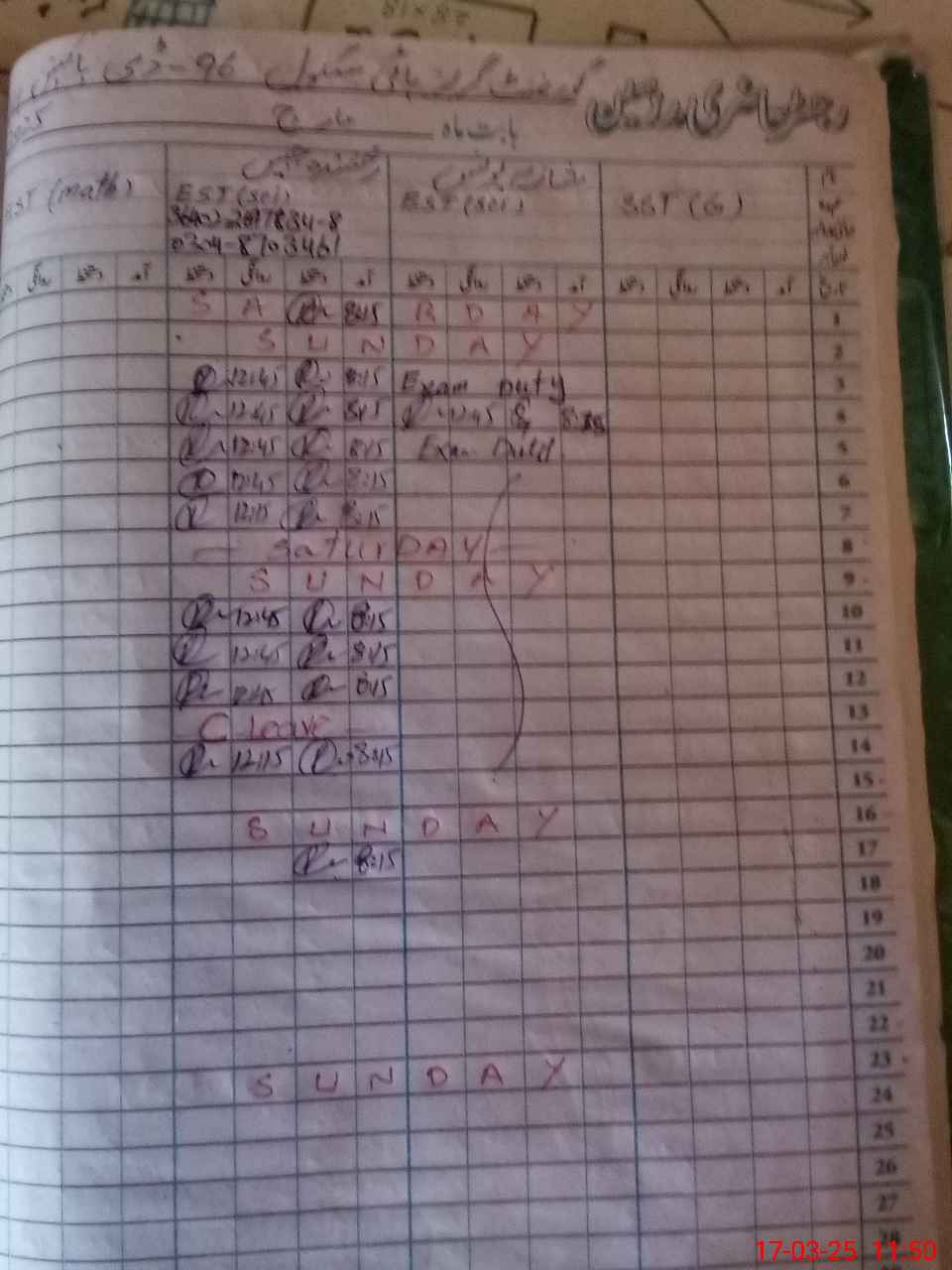 | 36**** | Sh**** Yo**** | Regular | 0 | 14 | 0 | 0 | 0 | 0 | 0 | 0 | 0 | Exam Duty | |