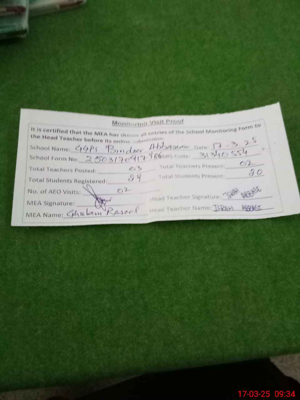 | EMIS Code: 31340554 | Name of School: GGPS BINDORE ABBASIAN | |||