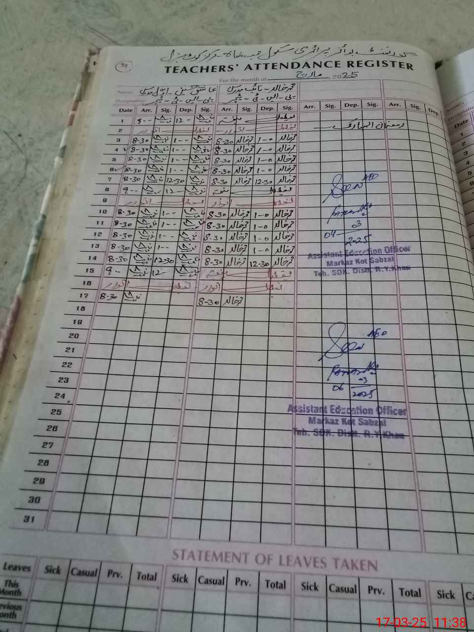 | Name: As**** Hu**** Designation: (School Headmaster's/Headmistress's) PST Phone/Cell Number: 03**** |