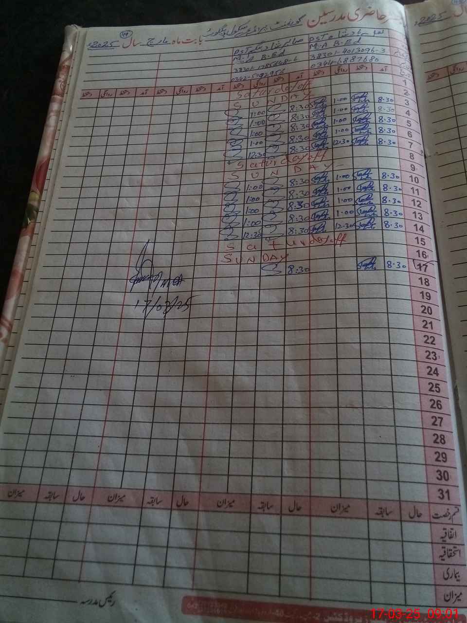 | Name: La**** Ba**** Designation: (School Headmaster's/Headmistress's) PST Phone/Cell Number: 03**** |