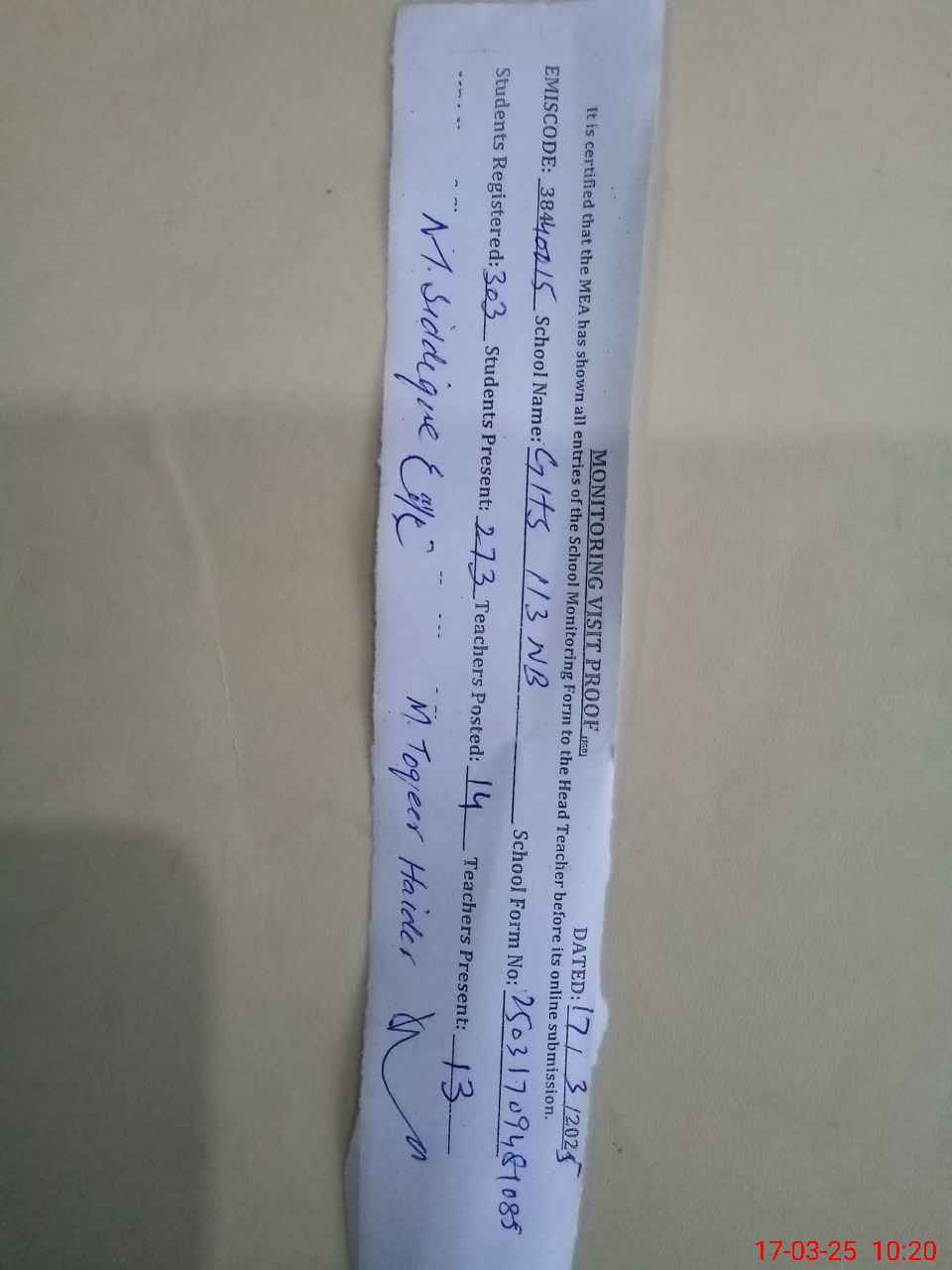 | EMIS Code: 38440015 | Name of School: GHS CHAK NO.113 NB | |||