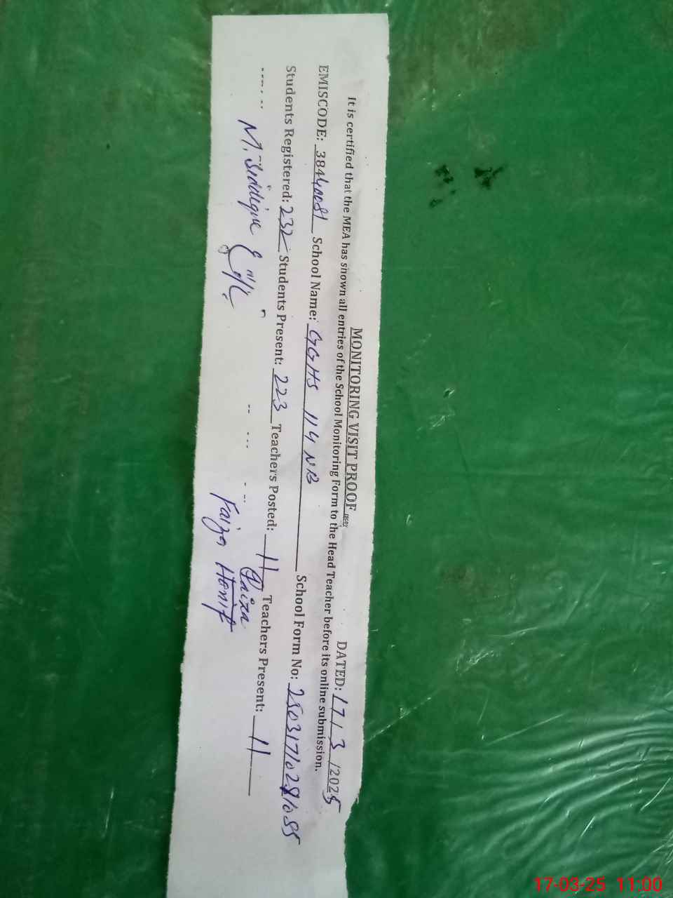 | EMIS Code: 38440081 | Name of School: GGHS CHAK NO.114 NB | |||