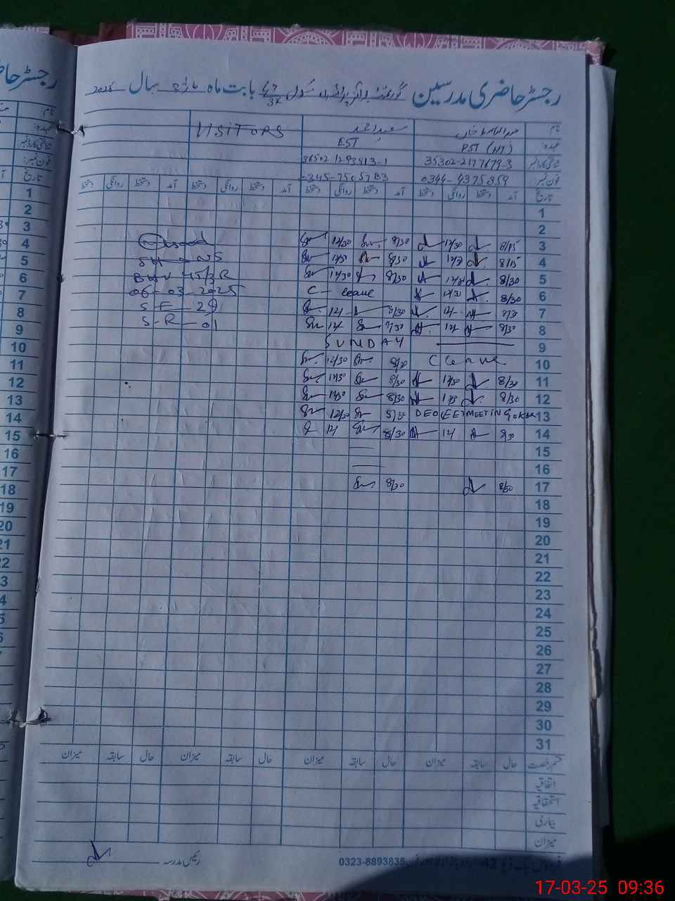| Name: AB**** BA**** KH**** Designation: (School Headmaster's/Headmistress's) ESE Phone/Cell Number: 03**** |