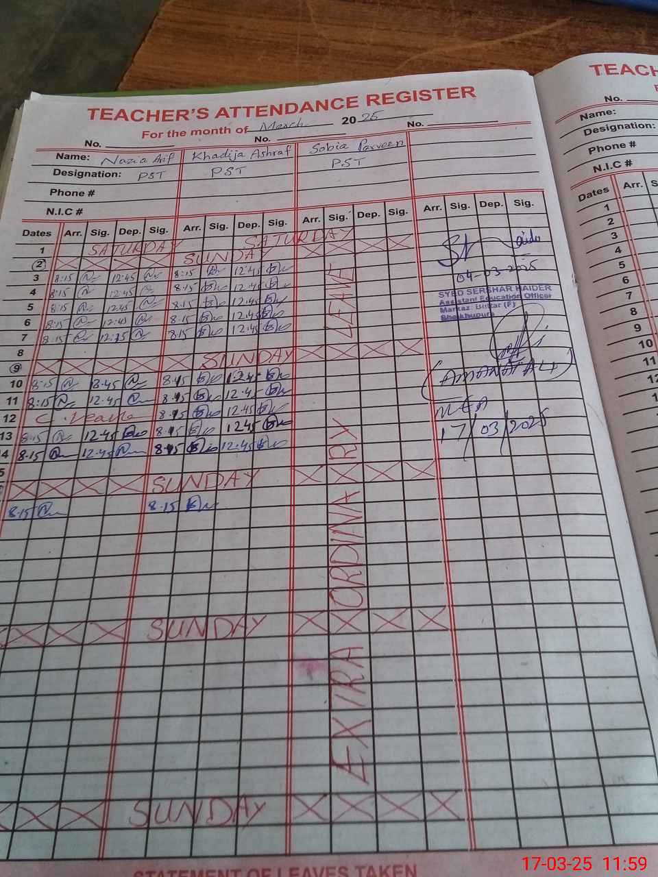 | Name: NA**** AR**** Designation: (School Headmaster's/Headmistress's) PST Phone/Cell Number: 03**** |