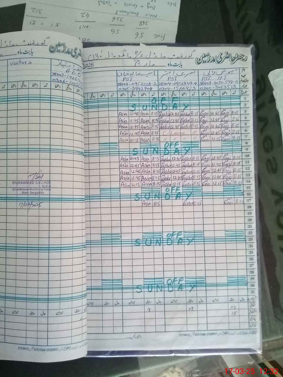 | Name: ME**** RA**** Designation: (School Headmaster's/Headmistress's) PST (SC-MATH) Phone/Cell Number: 03**** |