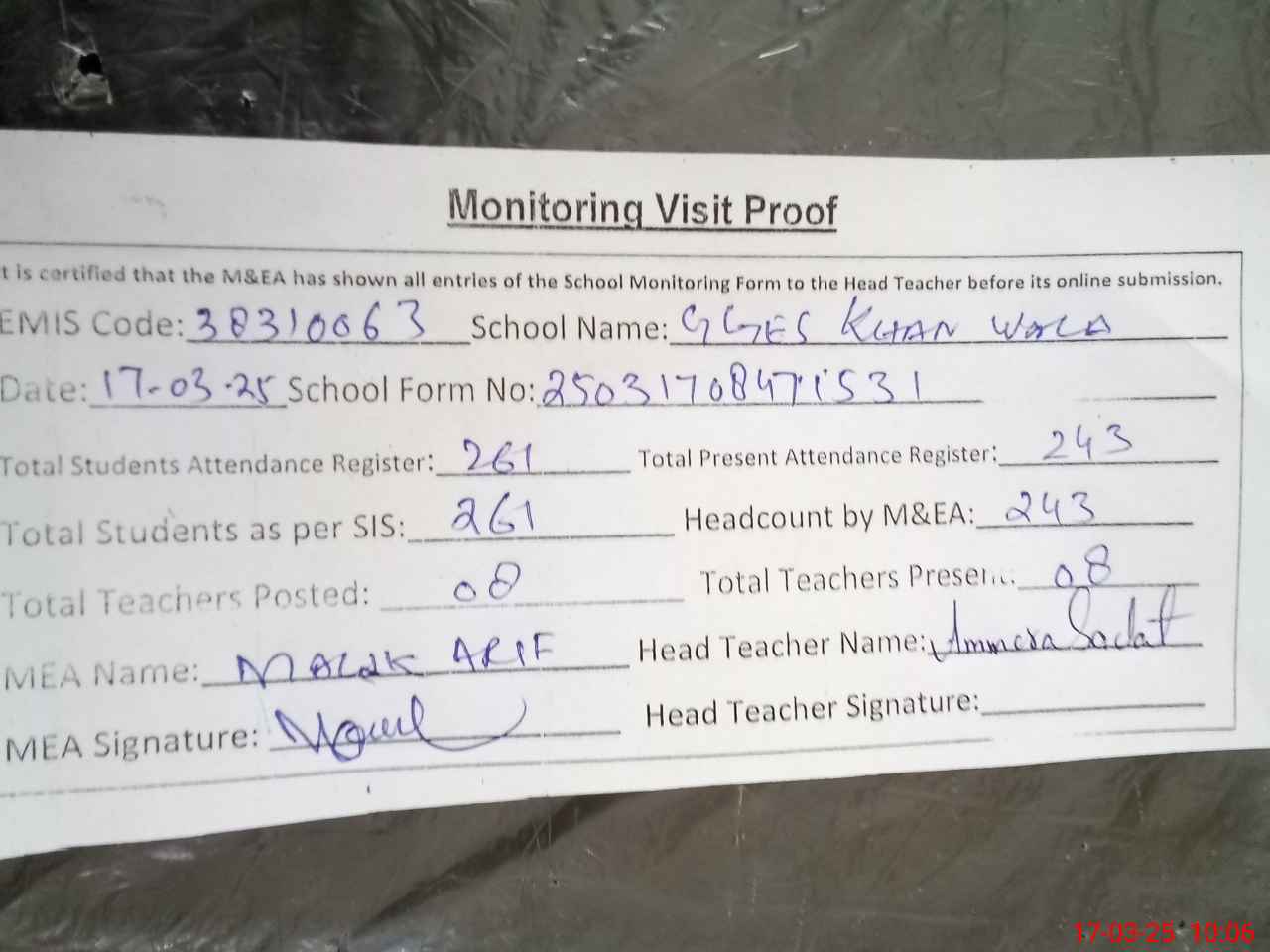 | EMIS Code: 38310063 | Name of School: GGES KHAN WALA | |||
