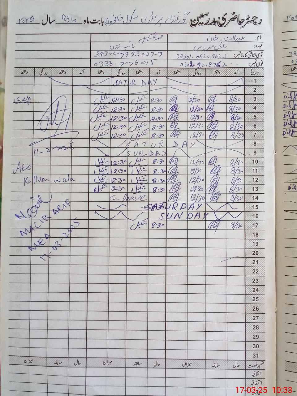 | Name: Ak**** Su**** Designation: (School Headmaster's/Headmistress's) PST Phone/Cell Number: 03**** |