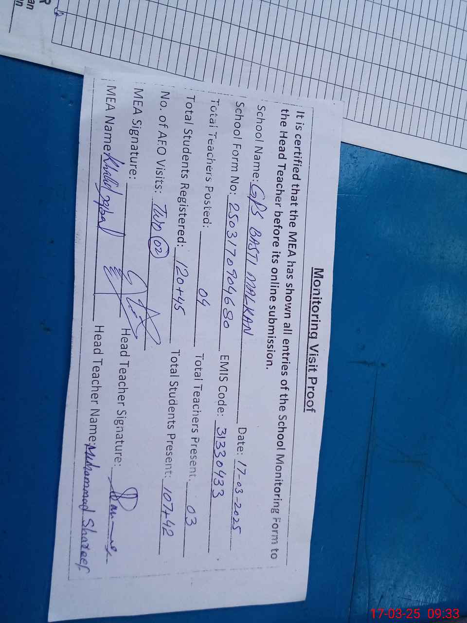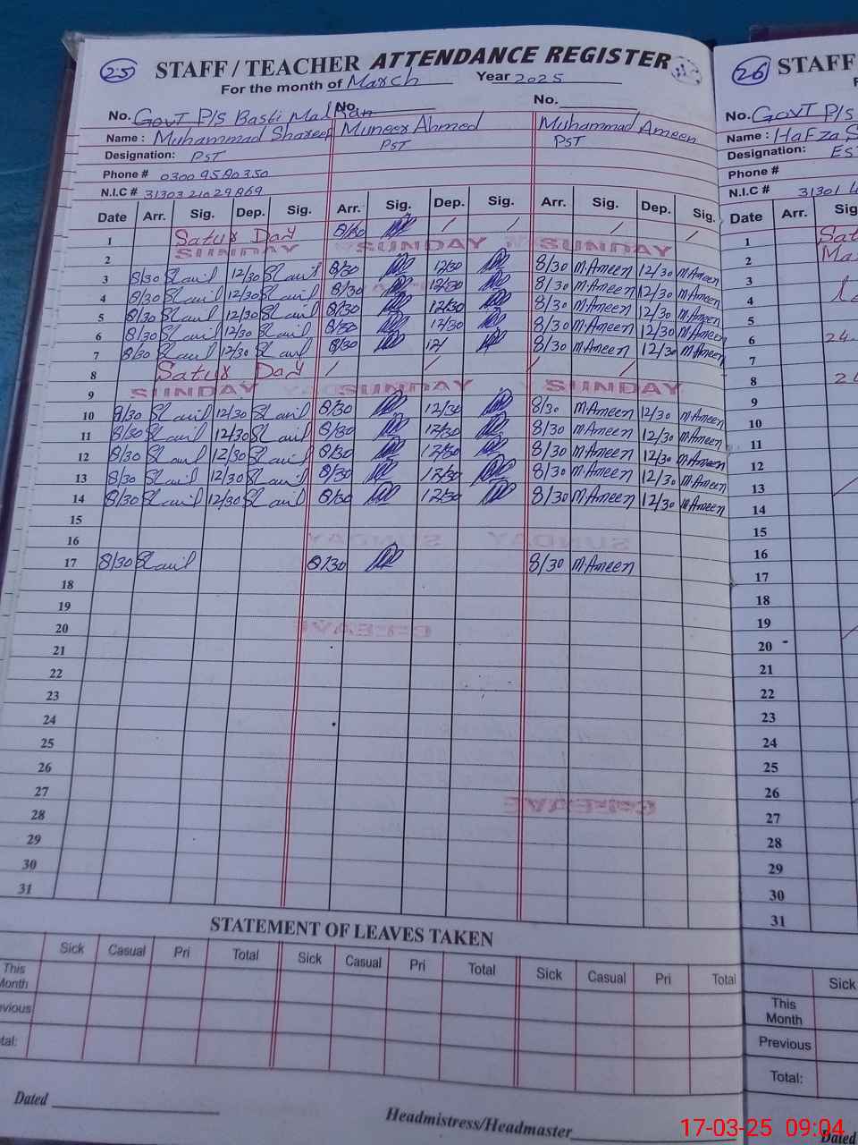 | Name: Mo**** SH**** Designation: (School Headmaster's/Headmistress's) PST Phone/Cell Number: 03**** |