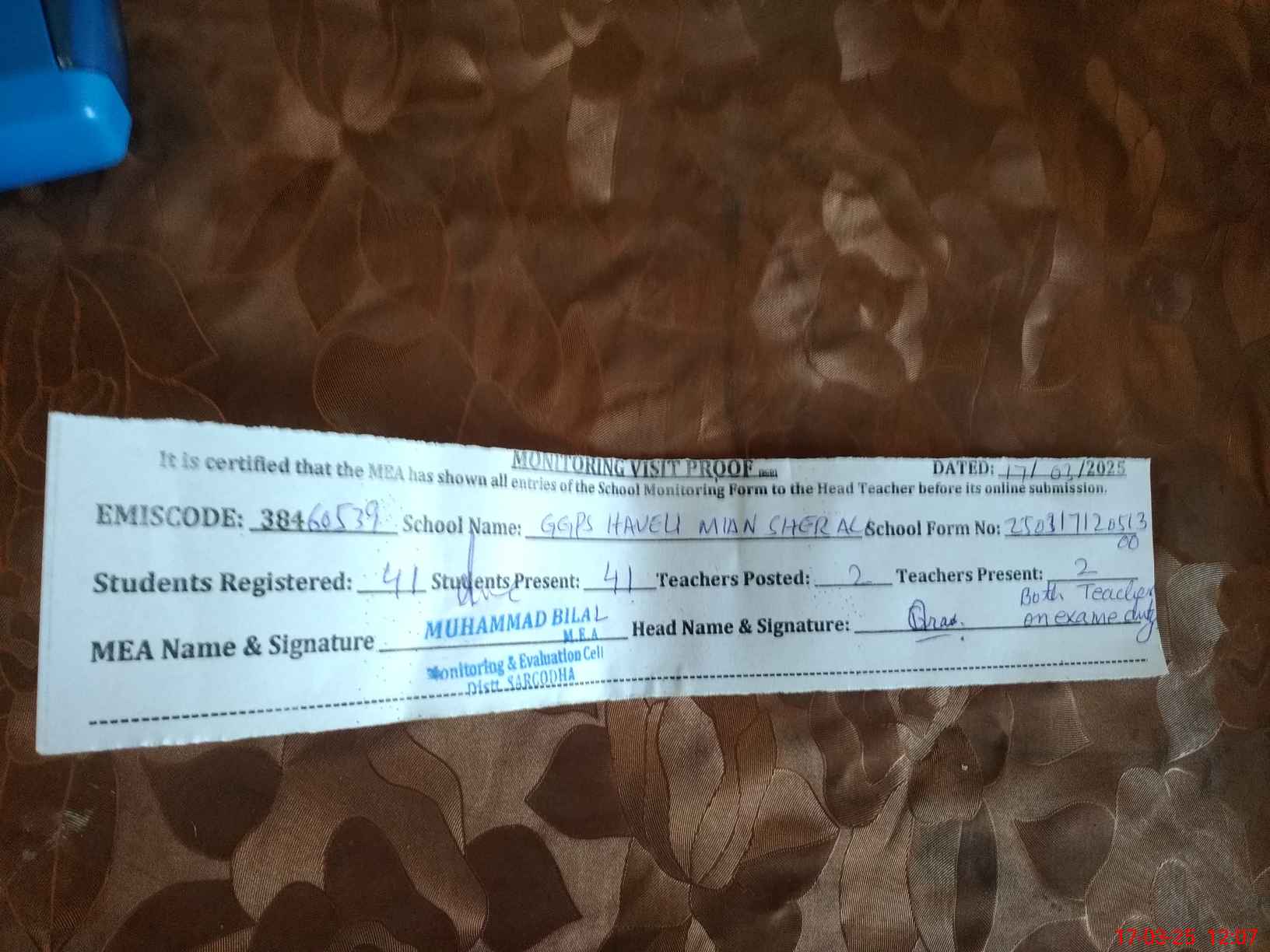 | EMIS Code: 38460539 | Name of School: GGPS HAVELI MIAN SHER ALI | |||