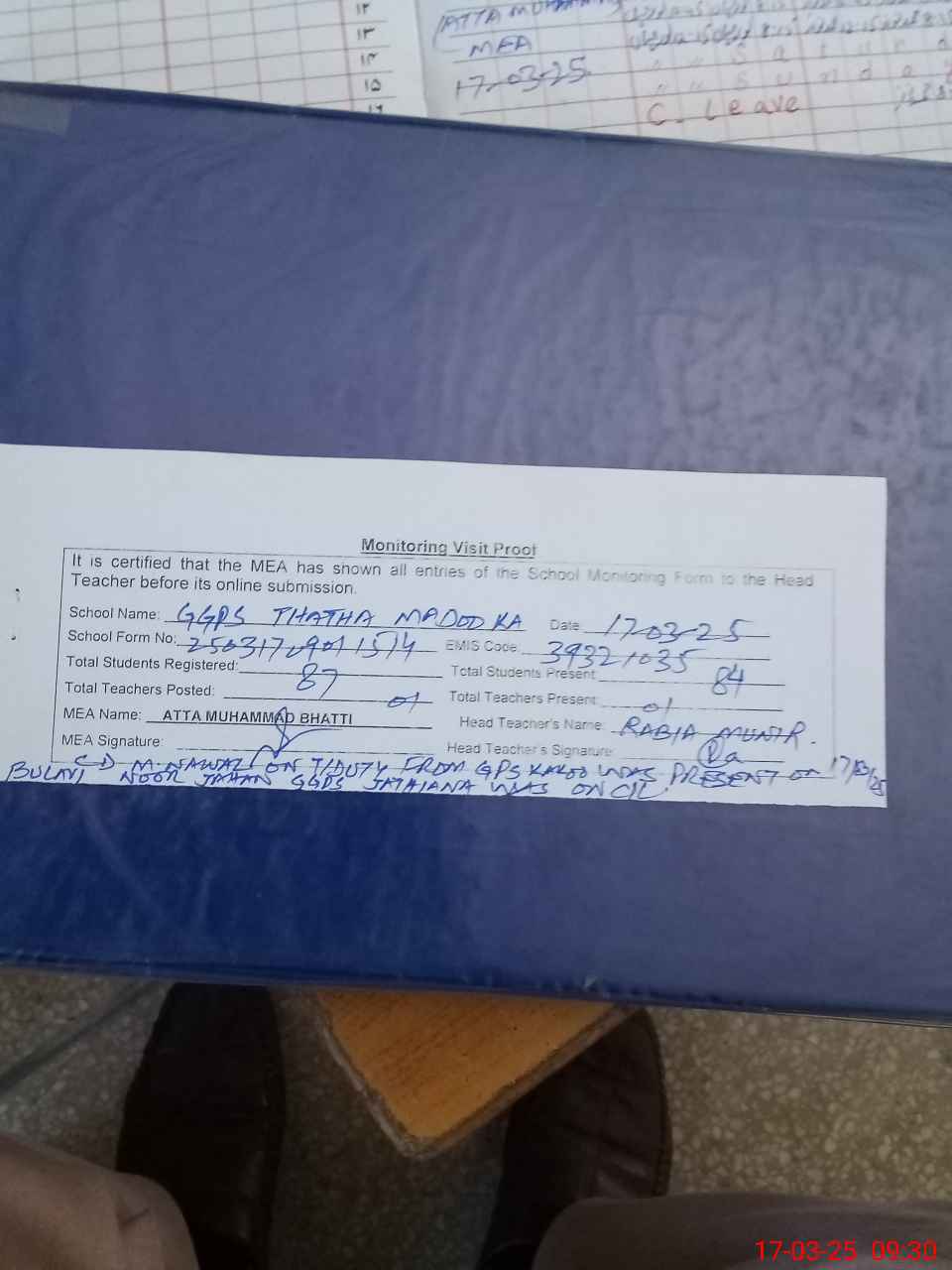 | EMIS Code: 39321035 | Name of School: GGPS THATHA MADOO KA | |||