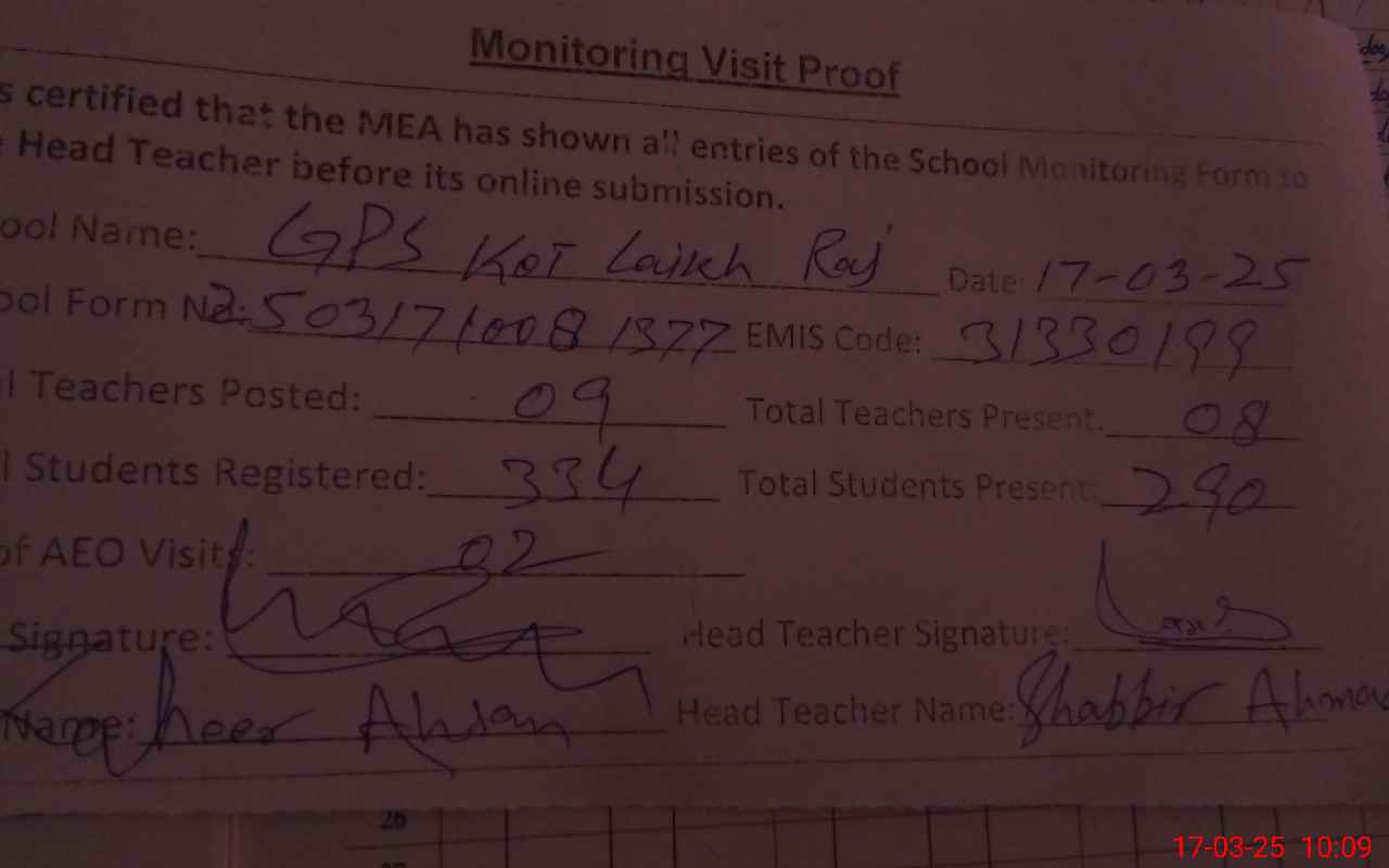 | EMIS Code: 31330199 | Name of School: GPS KOT LAIKH RAJ | |||