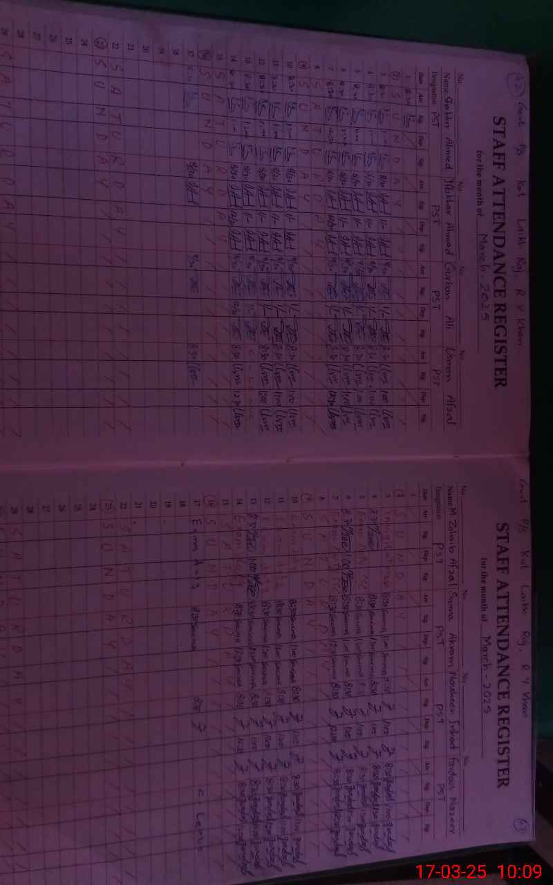 | Total no. of Classrooms: 9 No. of Classrooms Used for Teaching: 8 No. of Classrooms Storing Old Furniture, FTBs, etc: 0Comments if Any: Cash books not updated |