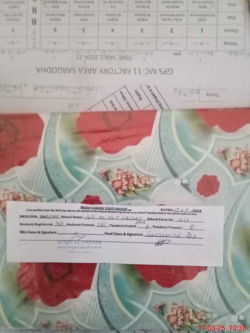 | EMIS Code: 38420400 | Name of School: GPS MC NO. 11 FACTORY AREA SARGODHA | |||