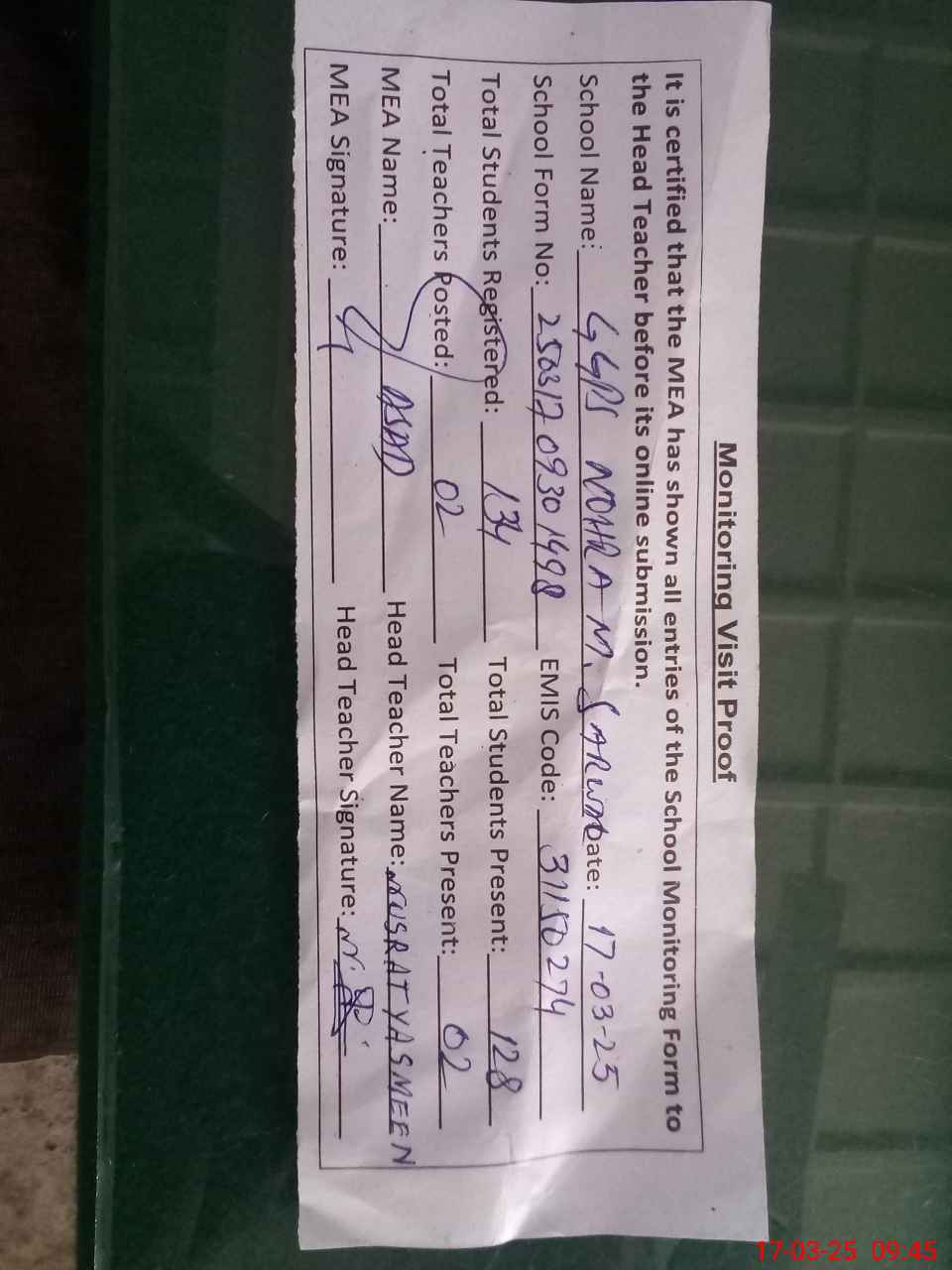 | EMIS Code: 31150274 | Name of School: GGPS NOHRA MUHAMMAD SARWAR | |||