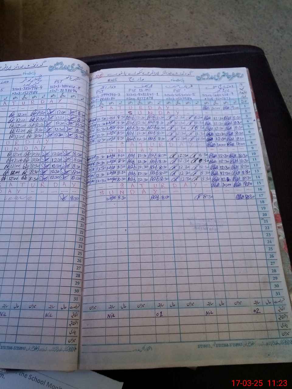 | CNIC | Full Name | Designation | R/C | Absence During Last Calender Month |
