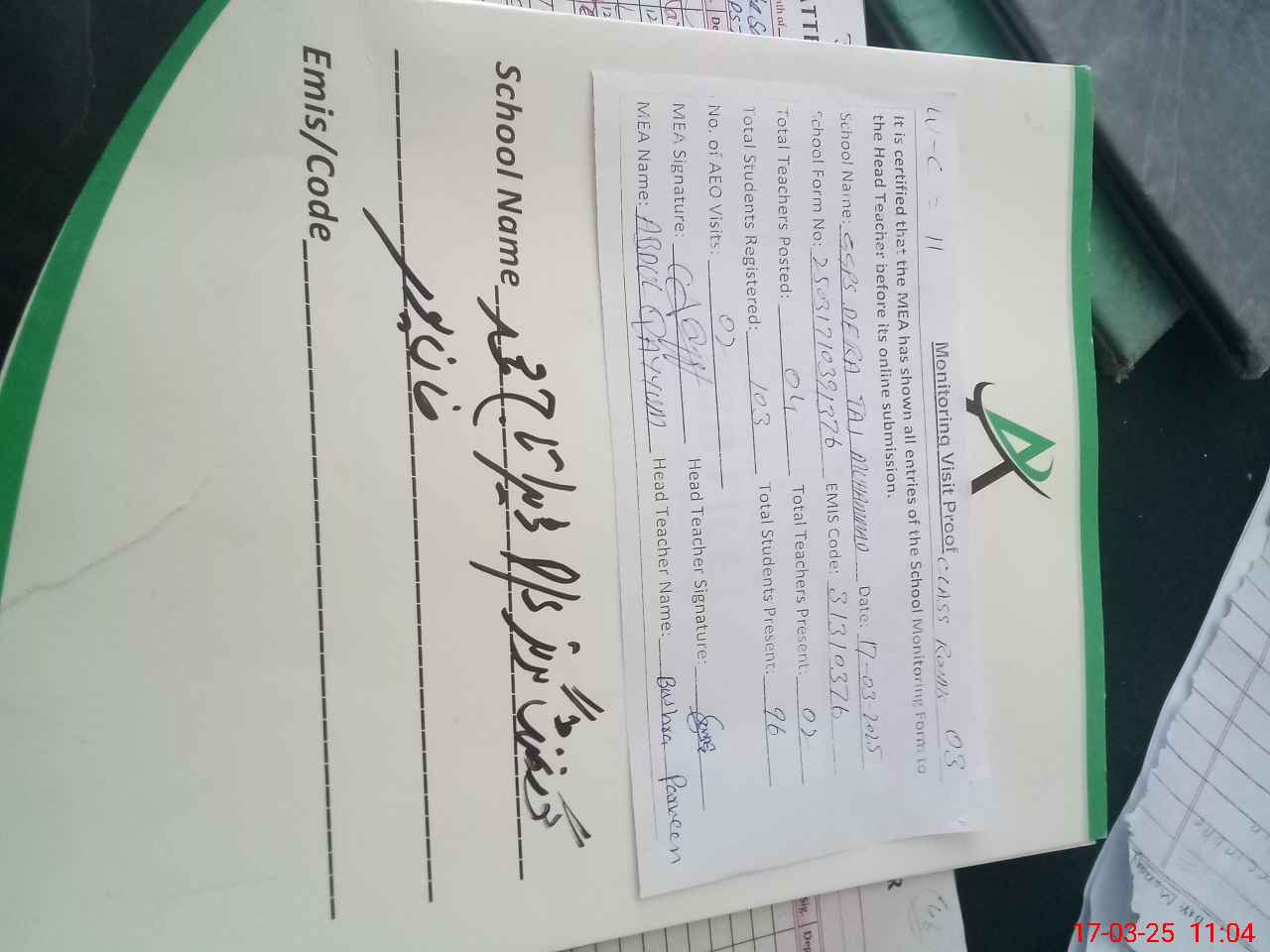 | EMIS Code: 31310376 | Name of School: GGPS DERA TAJ MUHAMMAD | |||