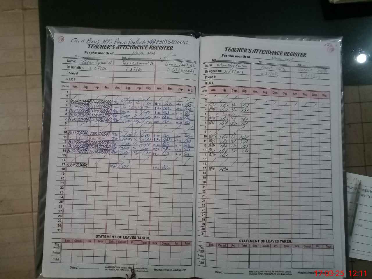 | 31**** | Mu**** Zu**** Ja**** Bu**** | SSE(Arts) | Temporary | 0 | 0 | 0 | 0 | 0 | 0 | 0 | 0 | 0 | Exam Duty |