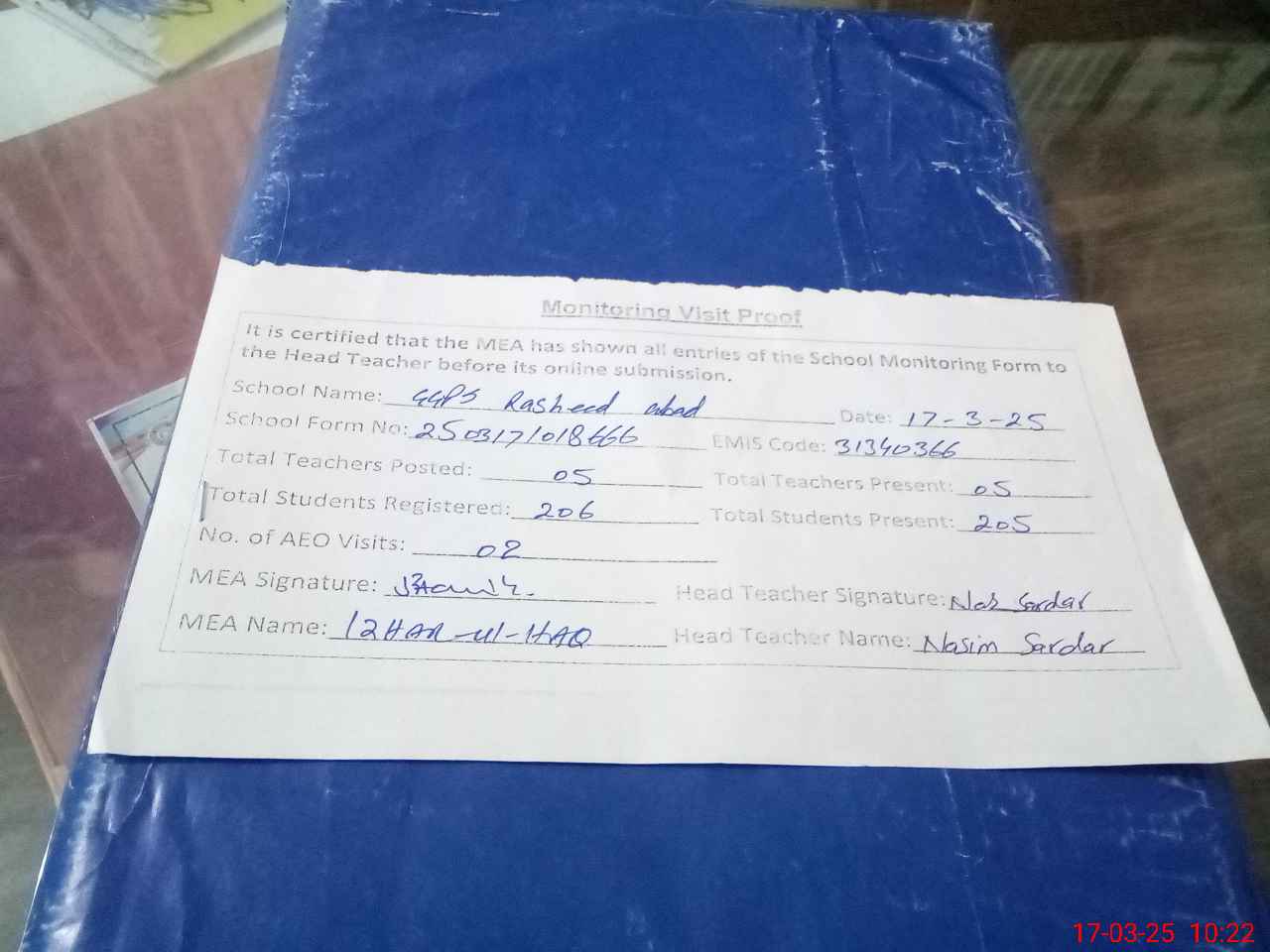 | EMIS Code: 31340366 | Name of School: GGPS RASHID ABAD NO. 3 MOHALLAH RASHID ABAD | |||