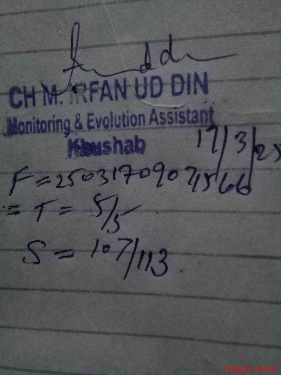 | Name: Mu**** Ar**** Designation: (School Headmaster's/Headmistress's) PST Phone/Cell Number: 03**** |