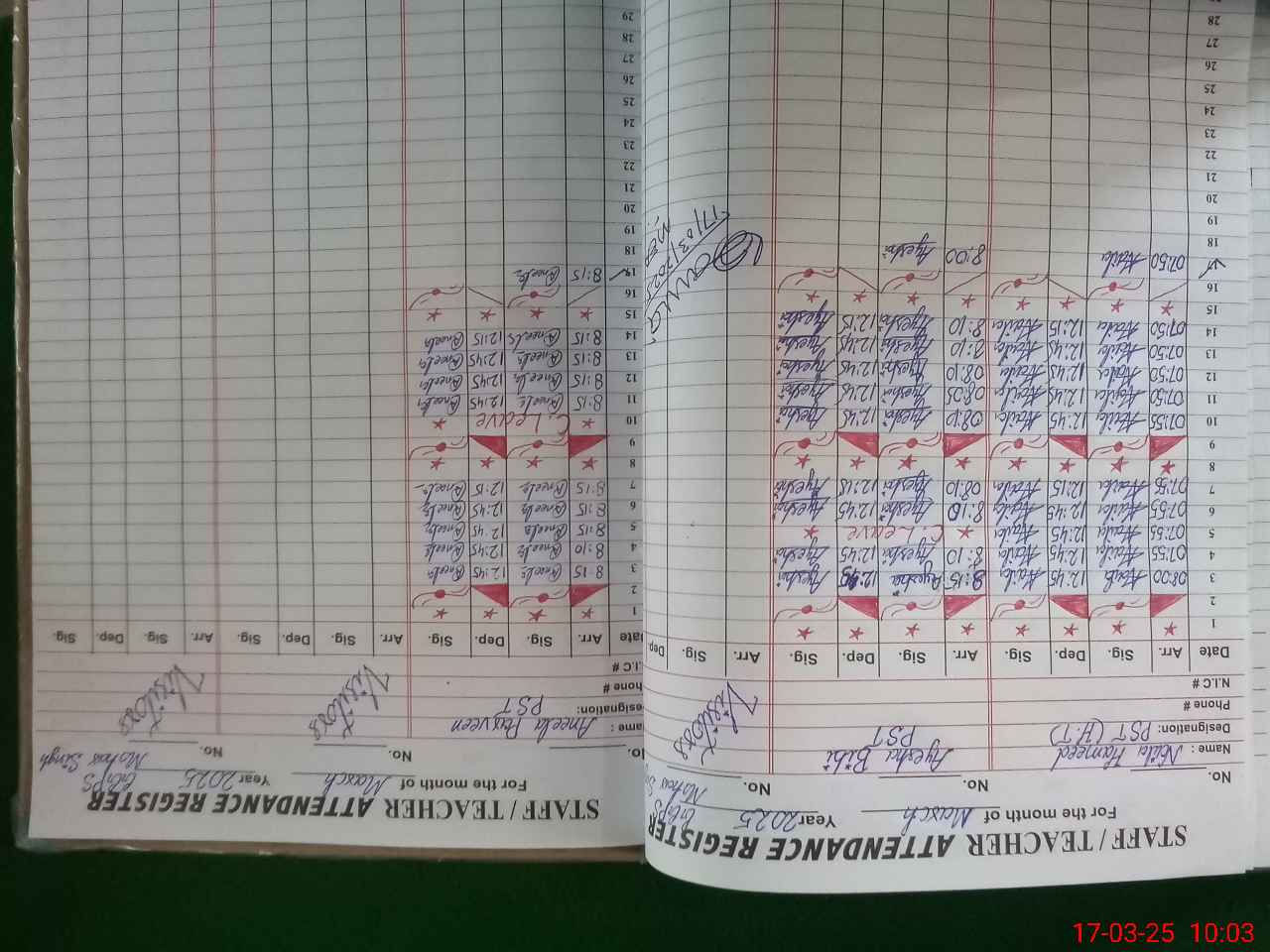 | Name: NA**** HA**** Designation: (School Headmaster's/Headmistress's) PST Phone/Cell Number: 03**** |