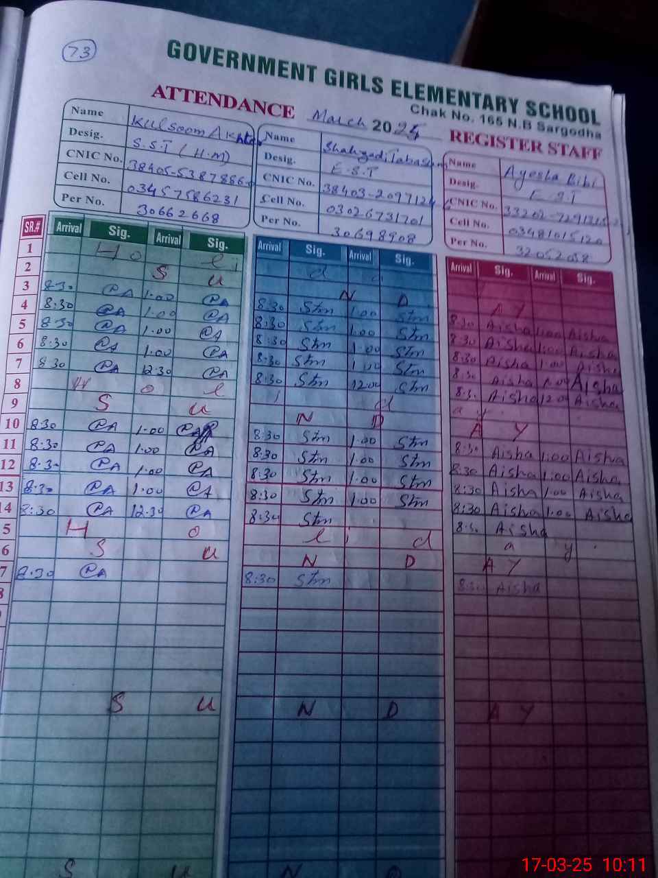 | Name: KA**** AK**** Designation: (School Headmaster's/Headmistress's) SST(Gen) Phone/Cell Number: 03**** |