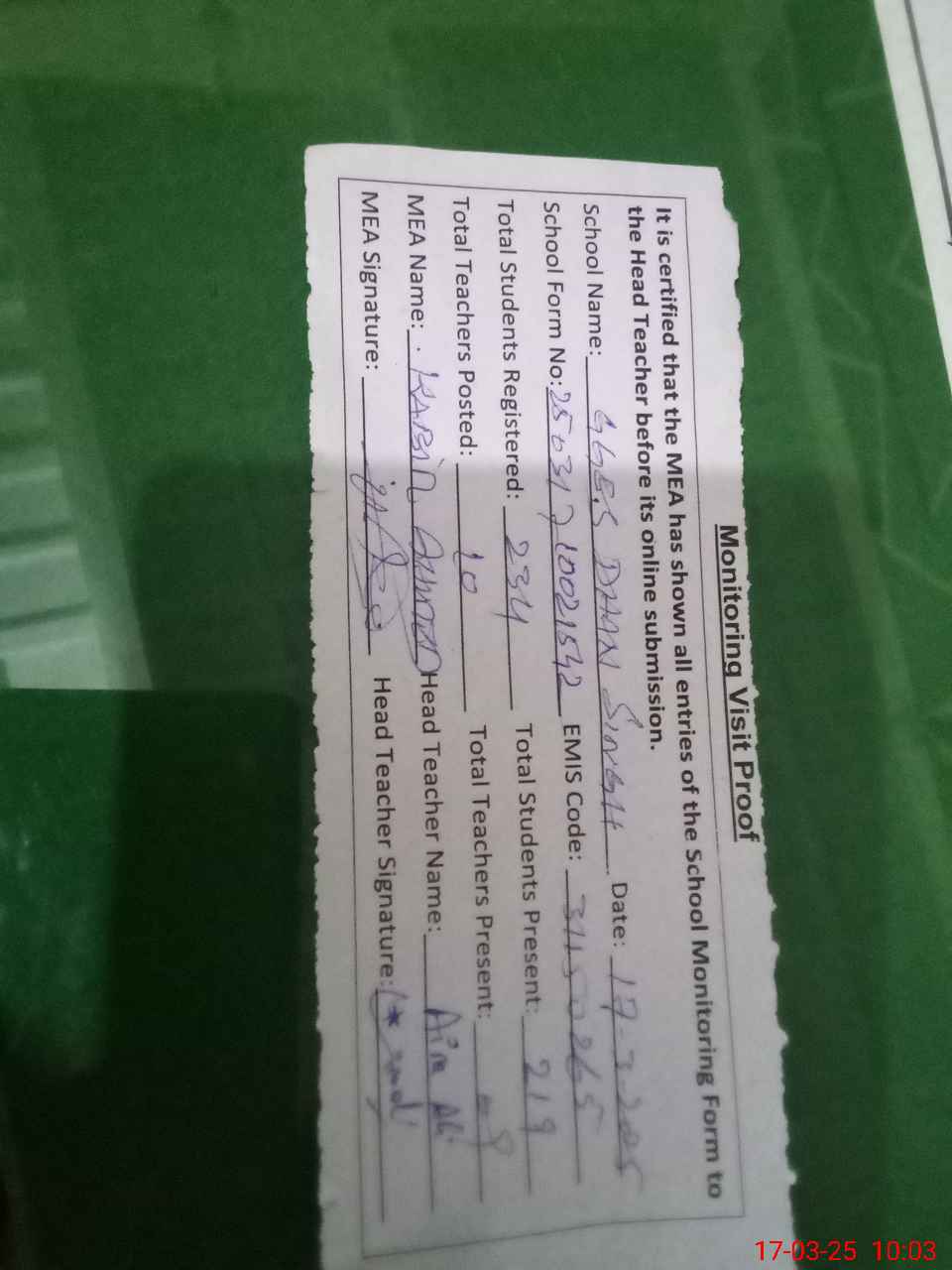 | Certified that this School was Inspected by the Undersigned MEA/DMO Today and the Information Stated Above is as Per Record. | |||||