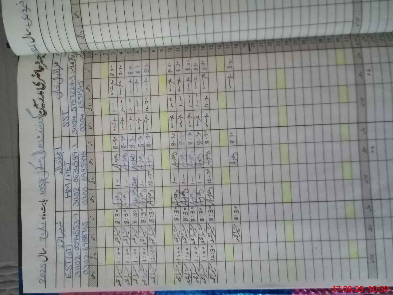 | 31**** | Mu**** Iq**** | 3 | 1 | 0 | 0 | 0 | 0 | 0 | 0 | 0 | 0 | 0 | Exam Duty |