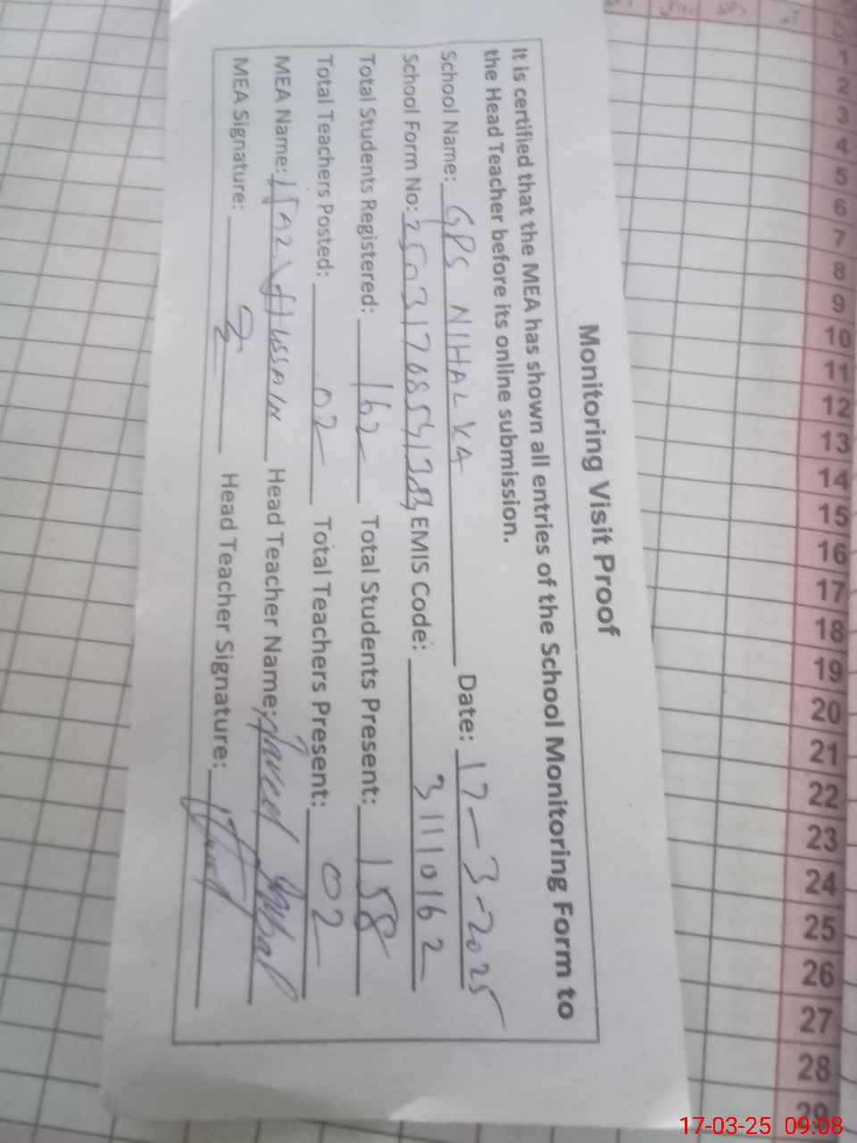 | EMIS Code: 31110162 | Name of School: GPS NIHALKA | |||