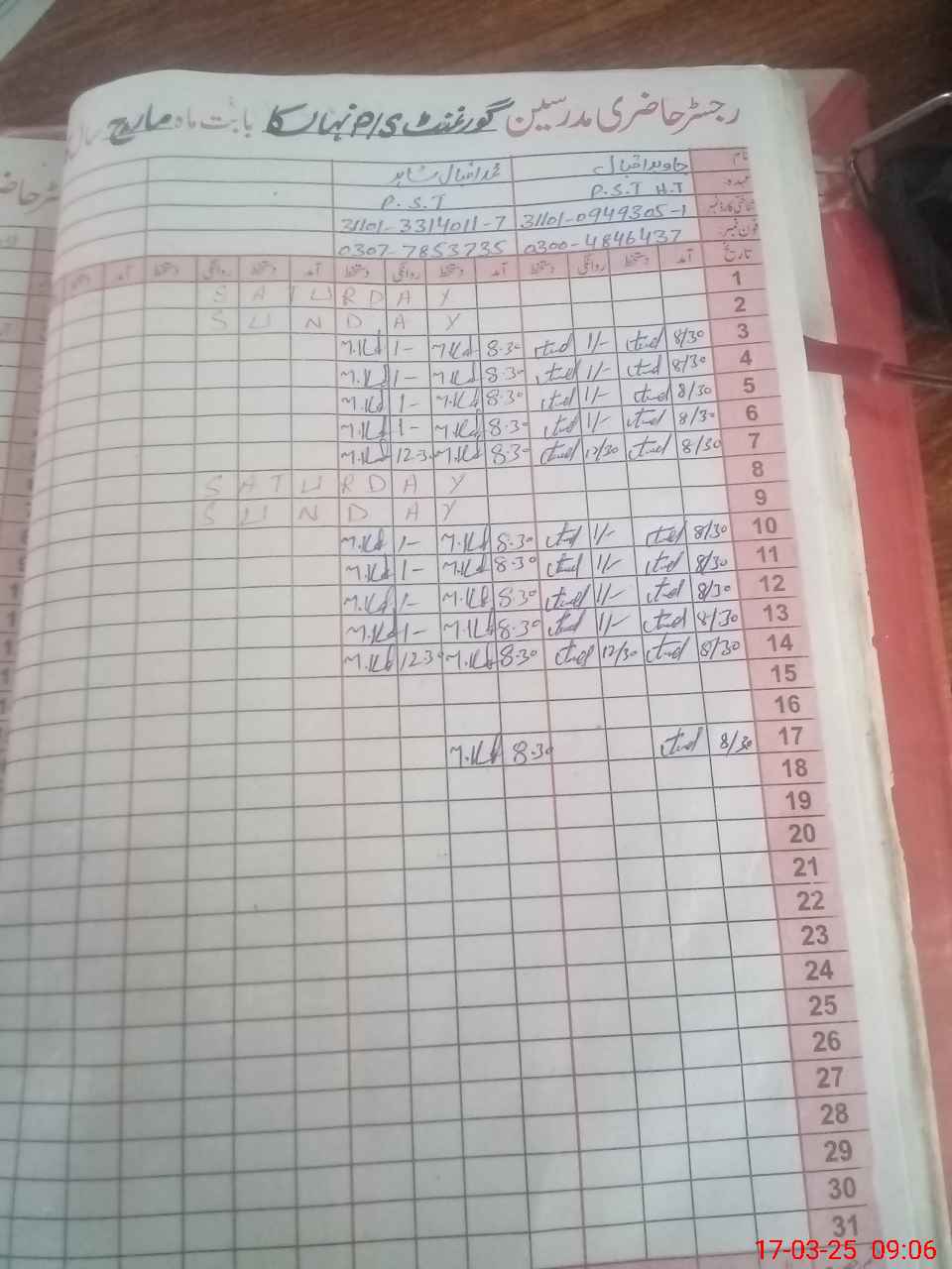 | Name: Ja**** Iq**** Designation: (School Headmaster's/Headmistress's) PST Phone/Cell Number: 03**** |