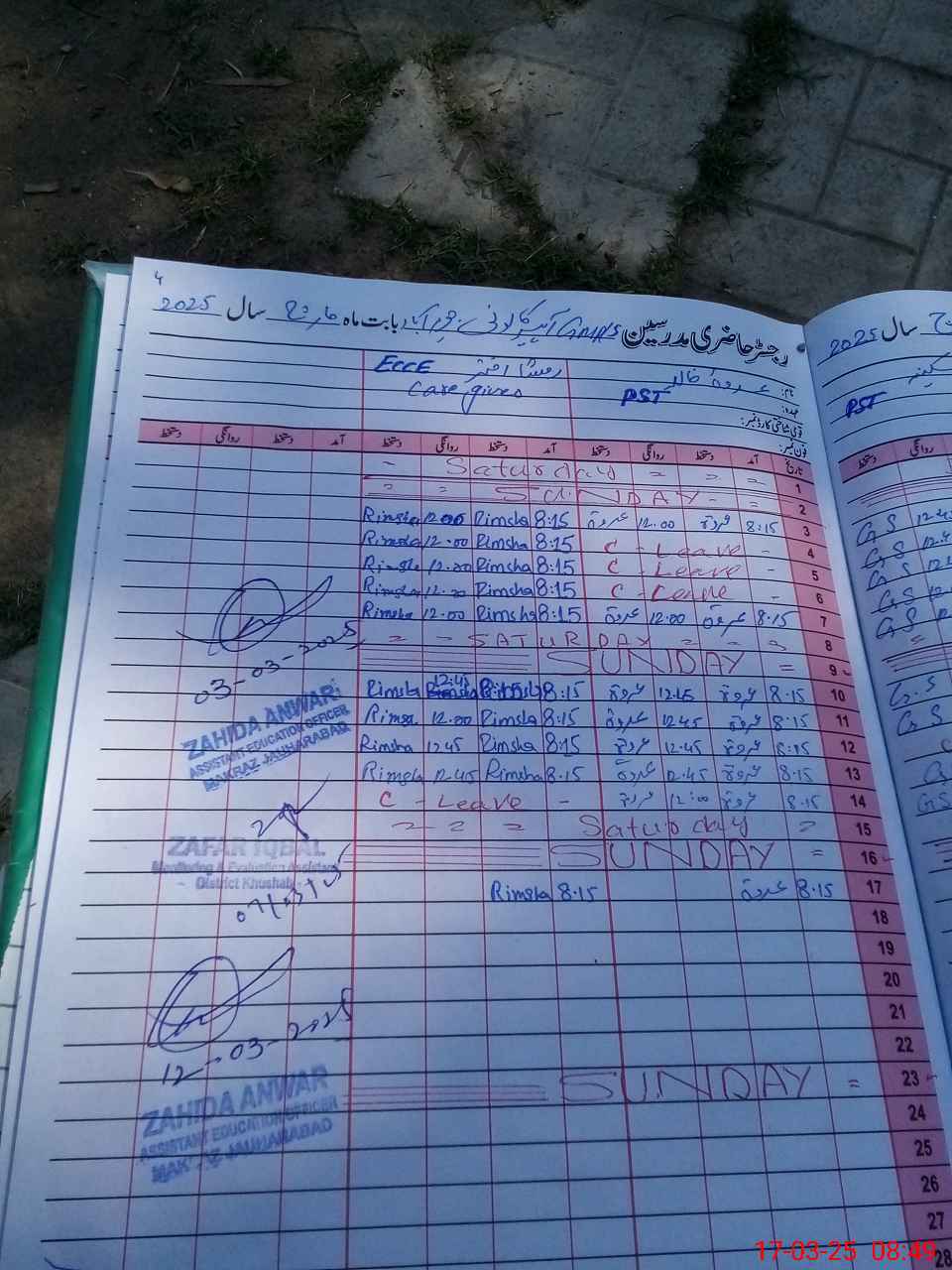 | Name: Gh**** Sa**** Designation: (School Headmaster's/Headmistress's) PST/PTC/JV Phone/Cell Number: 03**** |