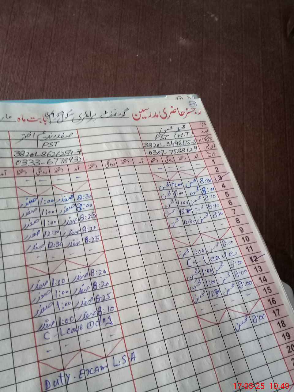 | Leave | Duty | Absent | Maternity | Medical | Ex- Pak |
