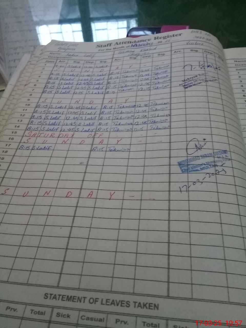 | 36**** | Sh**** Ak**** | PST | Regular | 0 | 0 | 0 | 0 | 0 | 0 | 0 | 0 | 0 | Exam Duty |