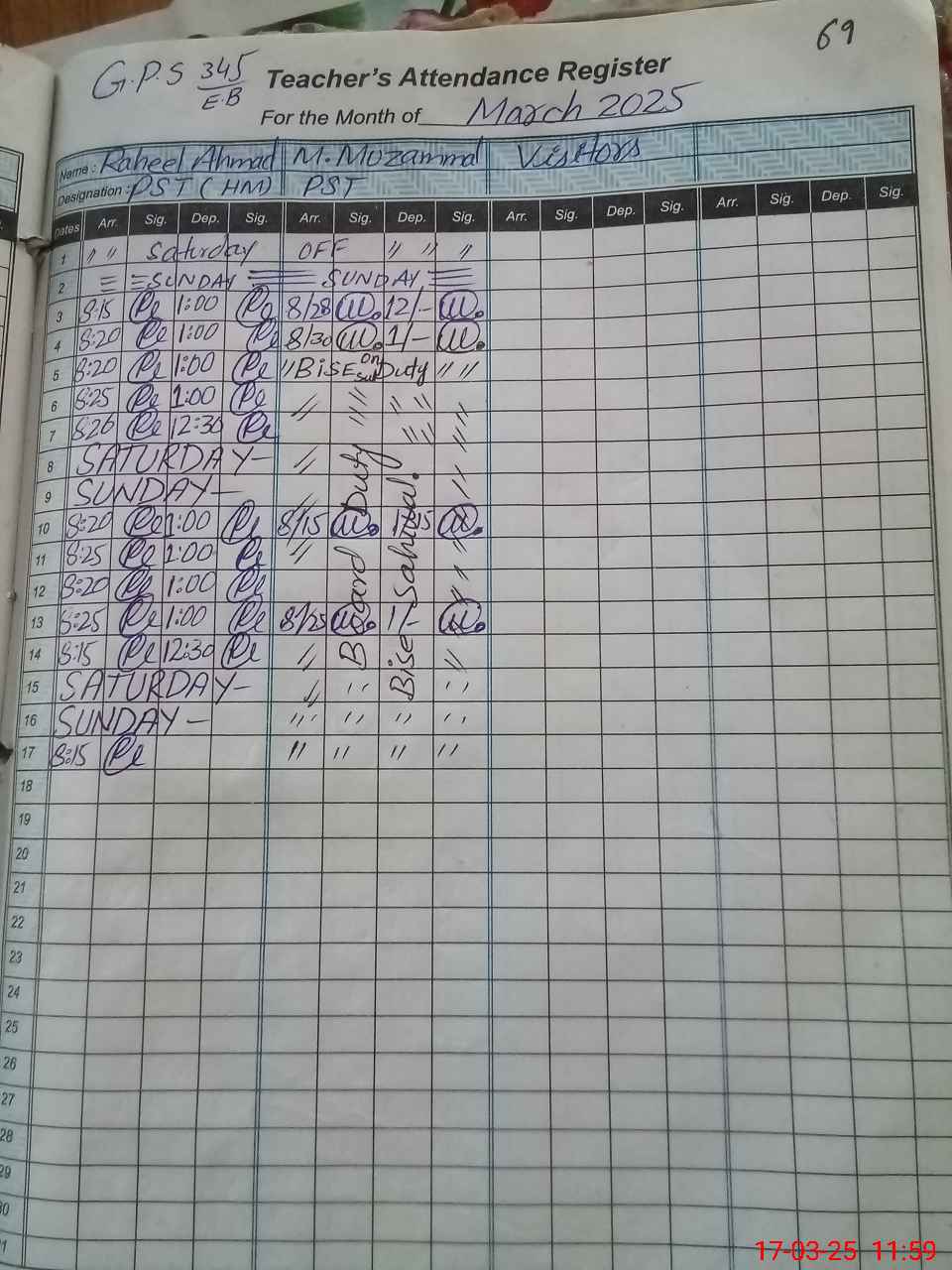 | Name: RA**** AH**** Designation: (School Headmaster's/Headmistress's) PST Phone/Cell Number: 03**** |