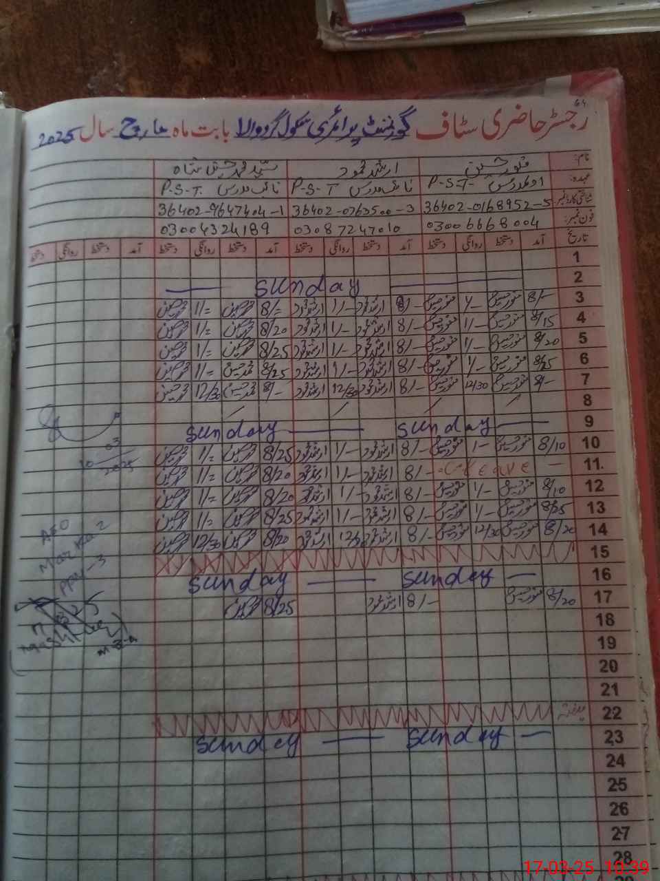 | Name: Mu**** Hu**** Designation: (School Headmaster's/Headmistress's) PST Phone/Cell Number: 03**** |