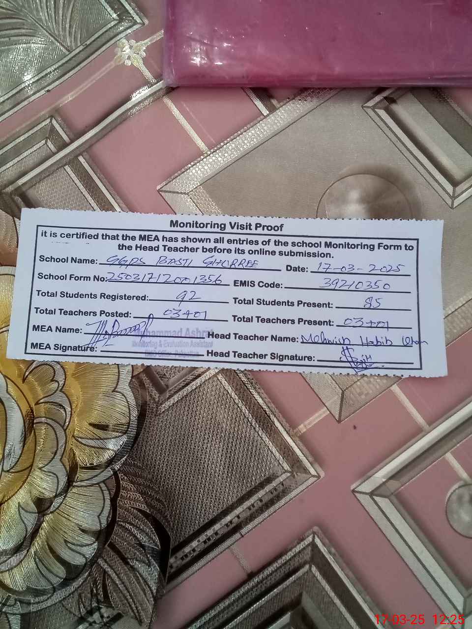 | EMIS Code: 39210350 | Name of School: GGPS BASTI GHUREE | |||