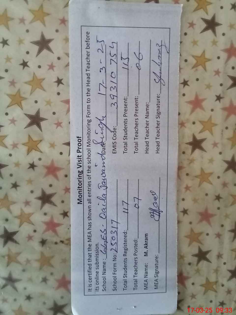 | EMIS Code: 39310754 | Name of School: GGCMES QILA JAWIND SINGH | |||