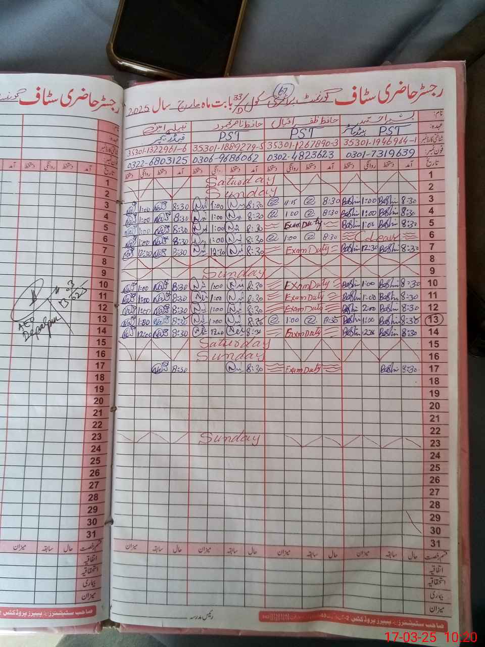 | 35**** | Ha**** Za**** Iq**** | 1 | 1 | 0 | 0 | 0 | 0 | 0 | 0 | 0 | 0 | 0 | Exam Duty |