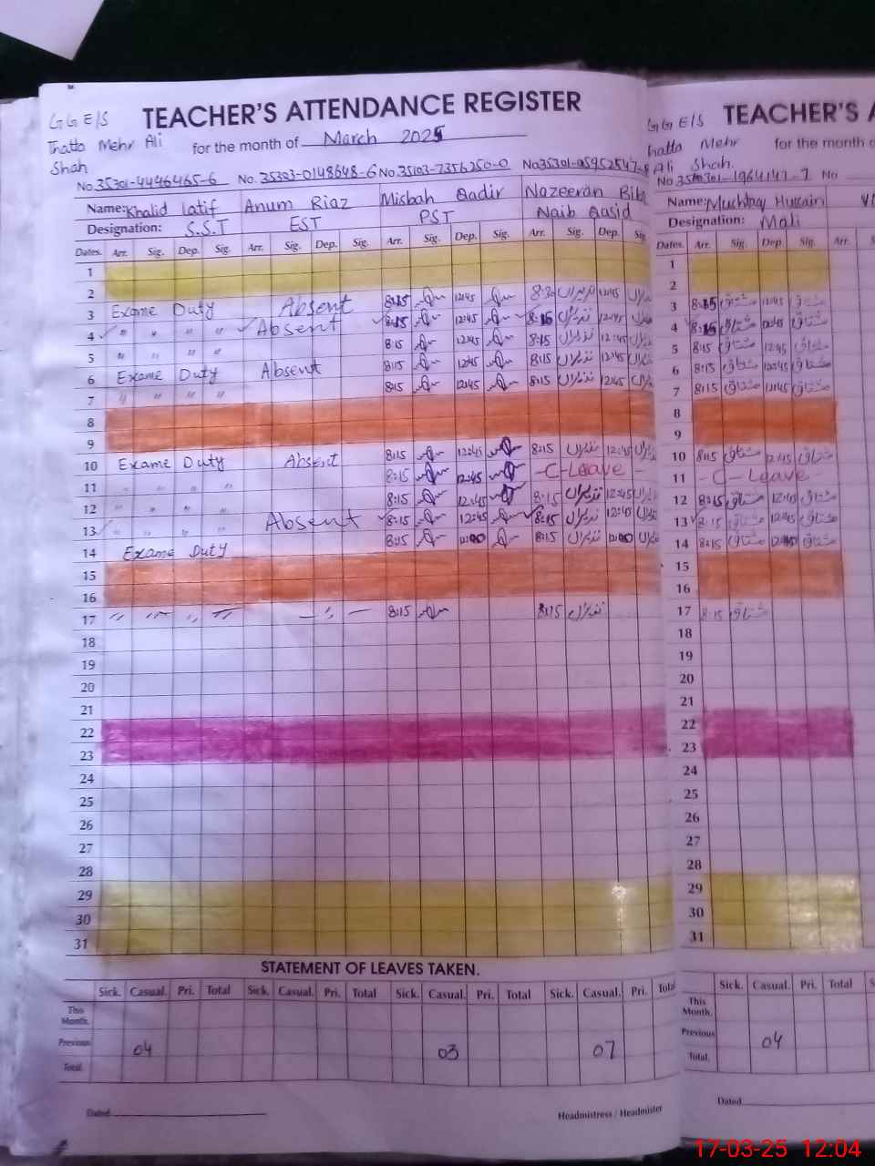 | 35**** | Kh**** La**** | SST | Regular | 0 | 0 | 0 | 0 | 0 | 0 | 0 | 0 | 0 | Exam Duty |