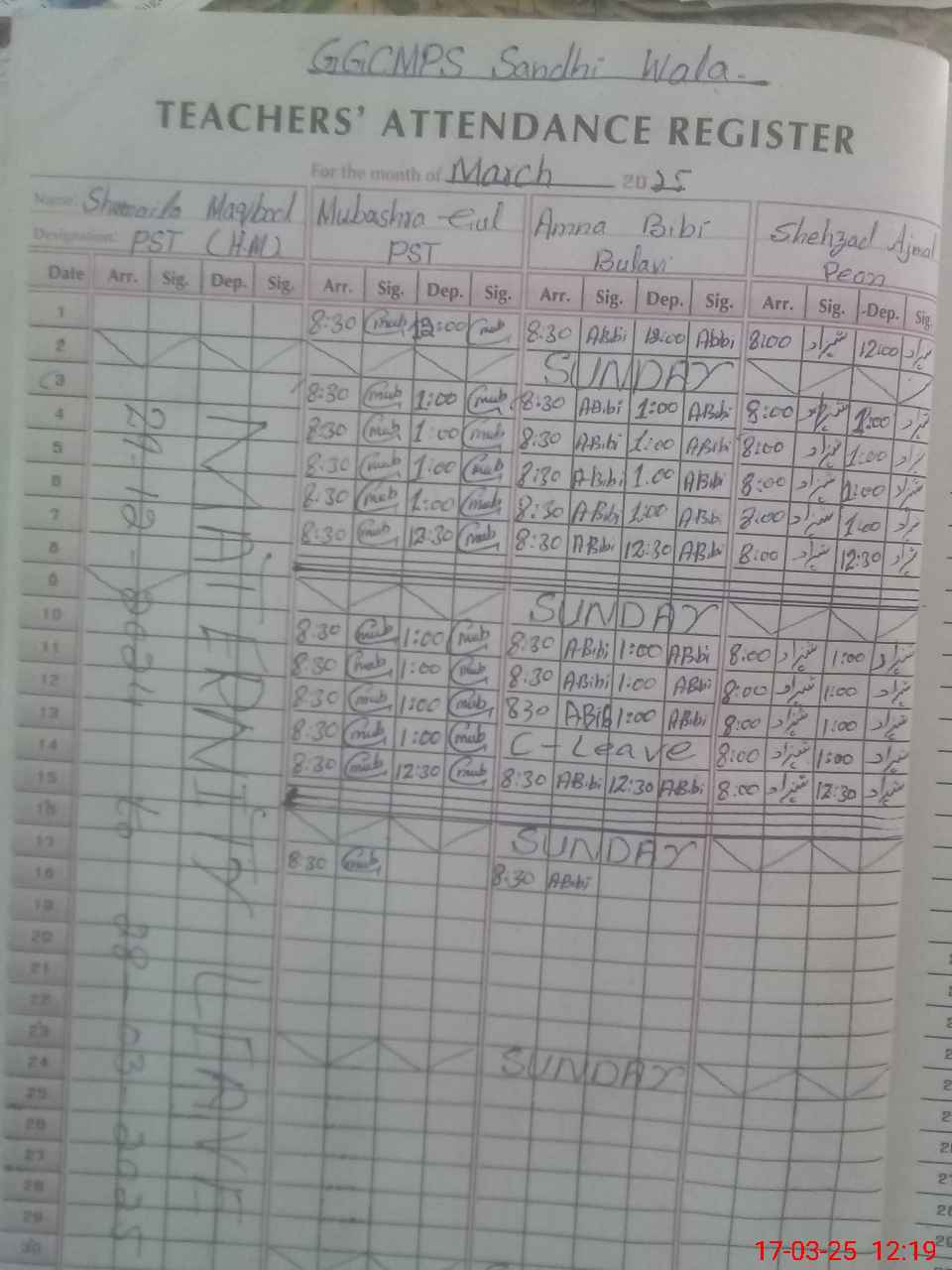 | 36**** | Sh**** Aj**** | CHOWKIDAR | Regular | 0 | 0 | 0 | 0 | 0 | 0 | 0 | 0 | 0 | Absent (Un-Authorized) |