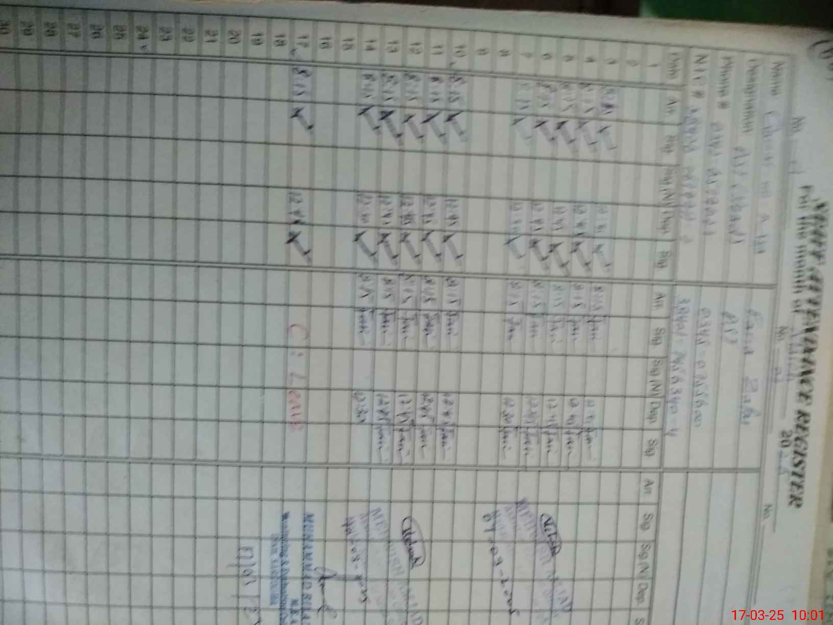 | CNIC | Full Name | Designation | R/C | Absence during last cal. month |