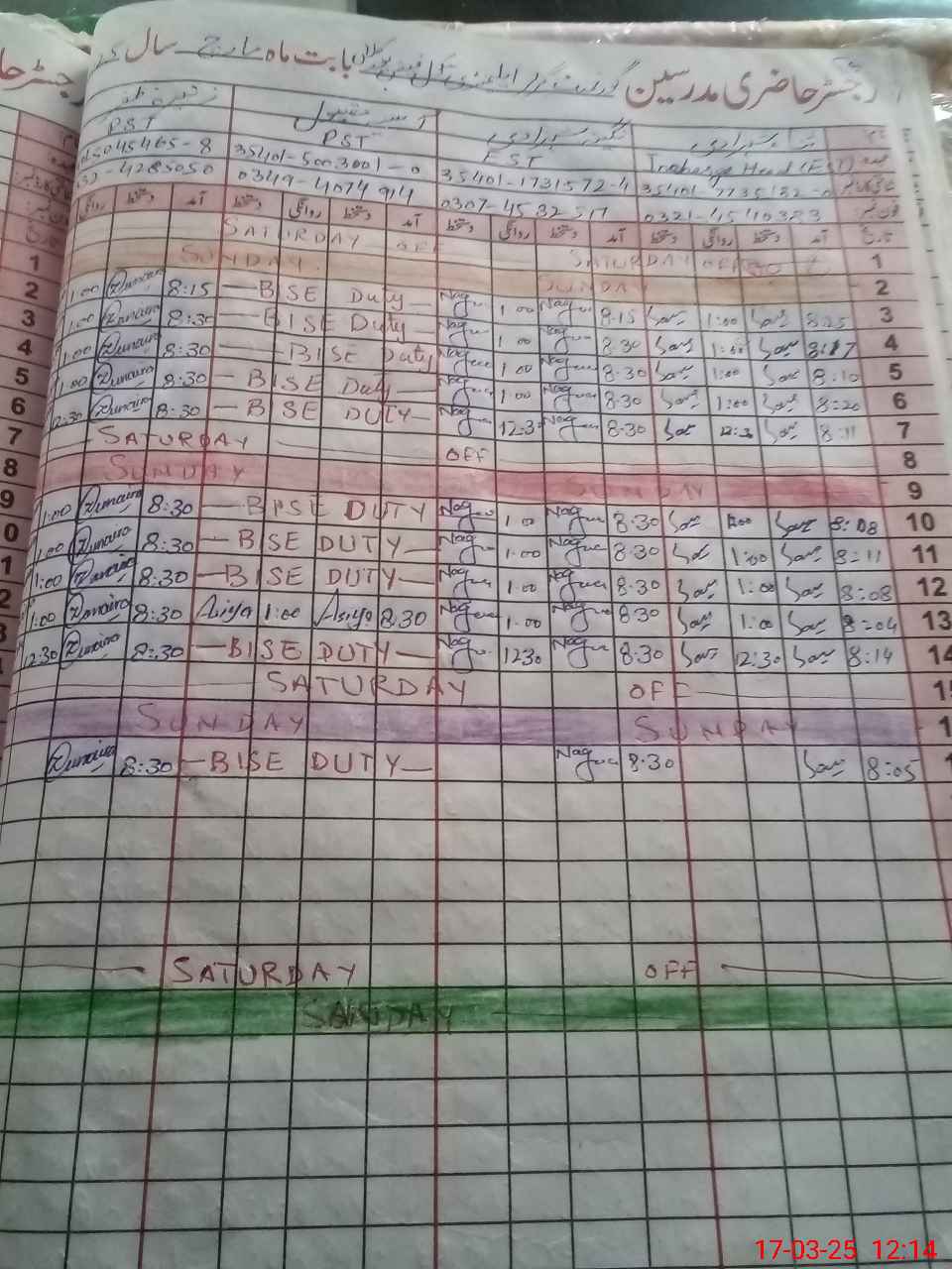 | 35**** | As**** Ma**** | 1 | 1 | 0 | 0 | 0 | 0 | 0 | 0 | 0 | 0 | 0 | Exam Duty |
