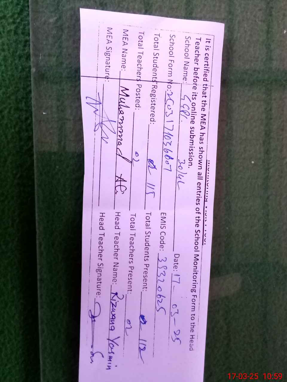 | Certified that this School was Inspected by the Undersigned MEA/DMO Today and the Information Stated Above is as Per Record. | |||||