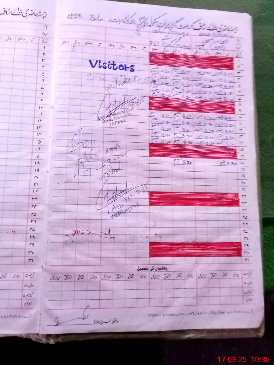 | District: OKARA | Tehsil: OKARA | Markaz: TABROOQ - FEMALE | Level: Primary | |