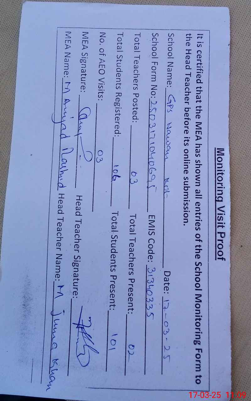 | EMIS Code: 31340335 | Name of School: GPS NAWAN KOT | |||