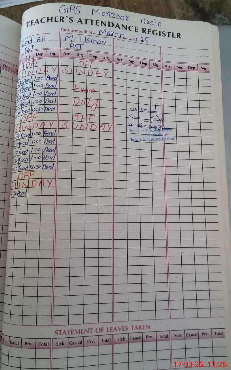 | Name: As**** Al**** Designation: (School Headmaster's/Headmistress's) PST Phone/Cell Number: 03**** |