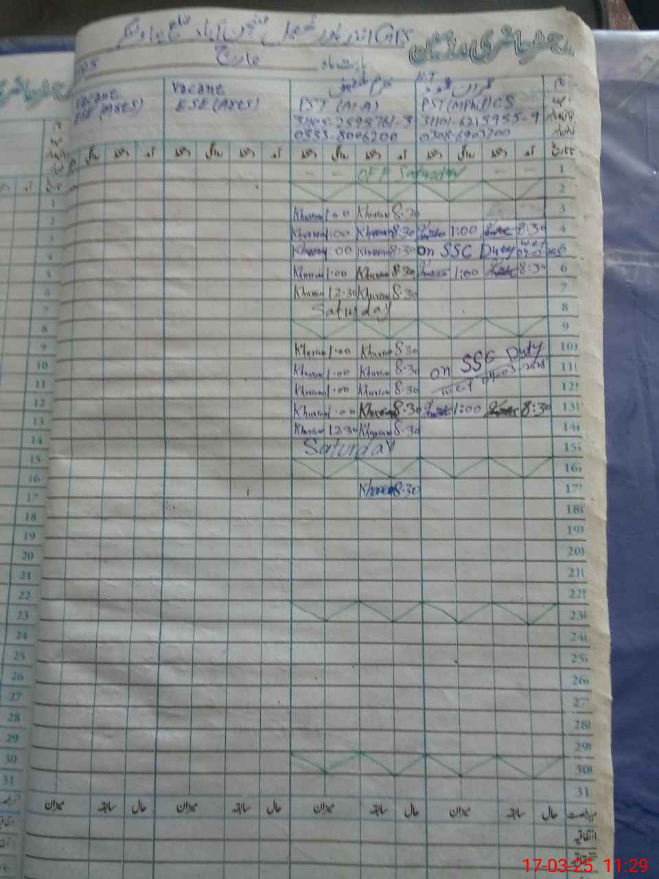 | 31**** | Im**** Me**** | PST | Regular | 0 | 0 | 0 | 0 | 0 | 0 | 0 | 0 | 0 | Exam Duty |