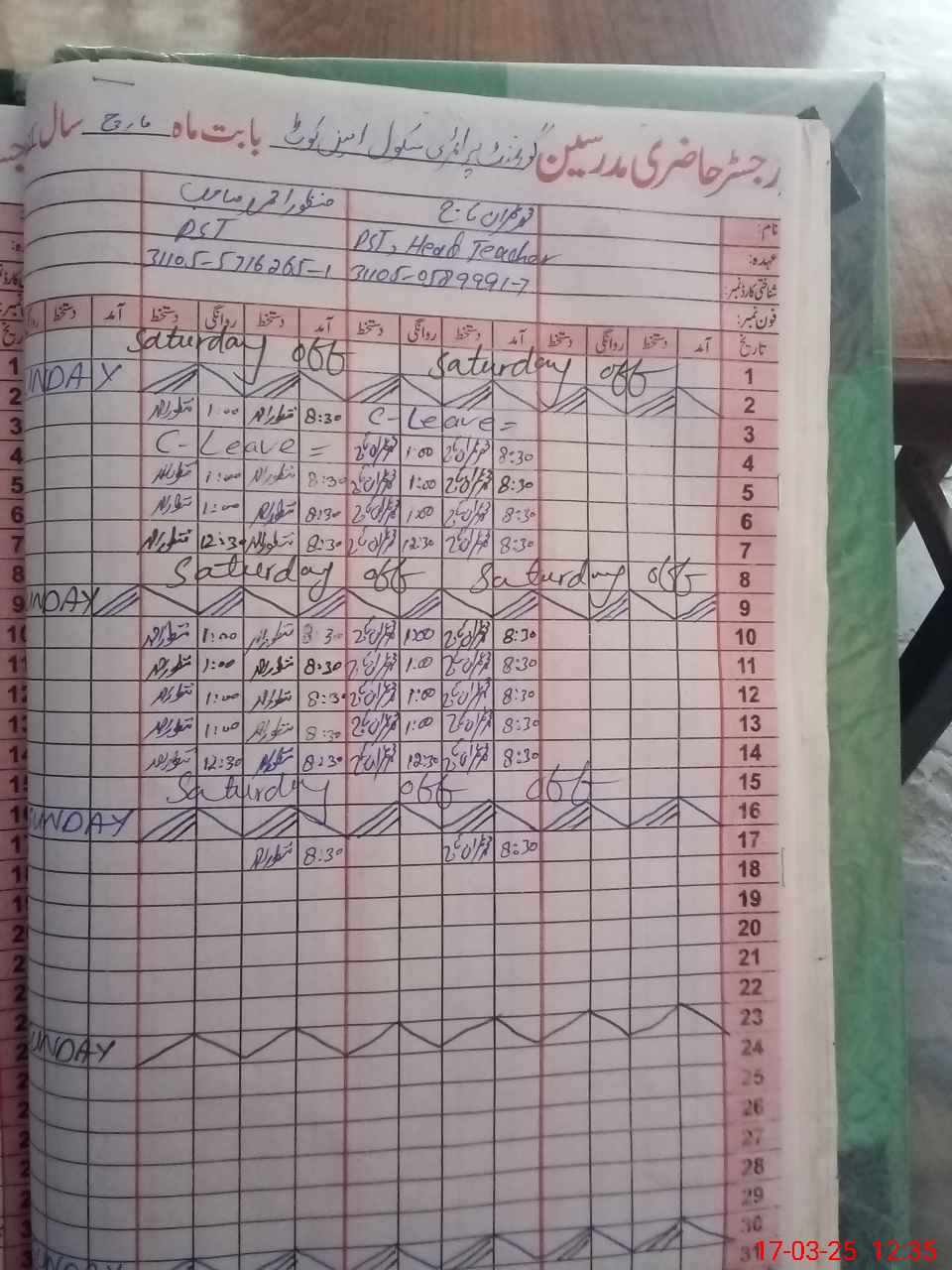 | Name: MU**** Az**** Designation: (School Headmaster's/Headmistress's) PST Phone/Cell Number: 03**** |