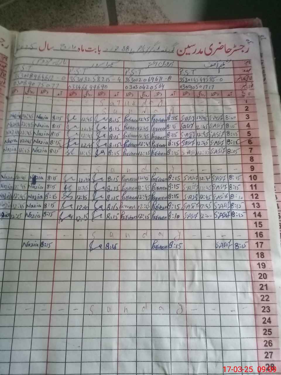 | Name: Sh**** As**** Designation: (School Headmaster's/Headmistress's) PST Phone/Cell Number: 03**** |