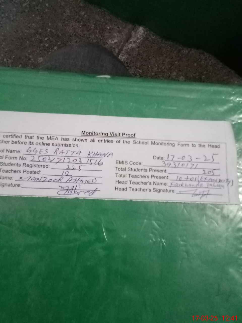 | EMIS Code: 39310171 | Name of School: GGES RATTA KHANA | |||