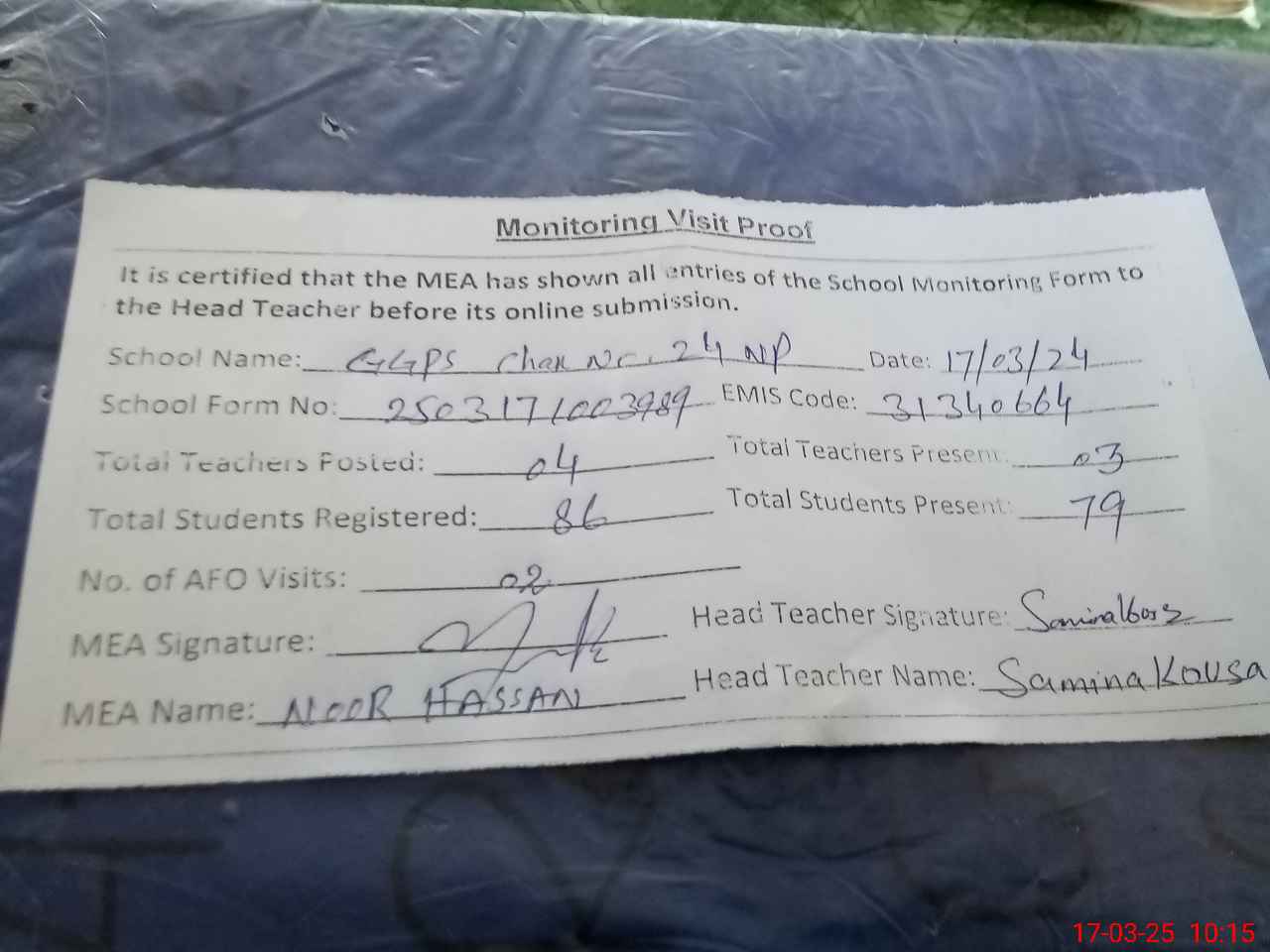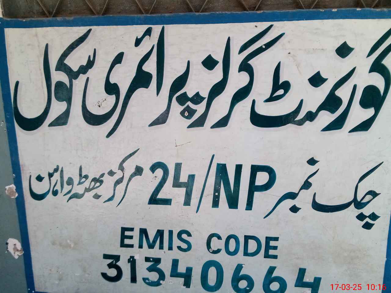 | EMIS Code: 31340664 | Name of School: GGPS CHAK NO.24/NP | |||